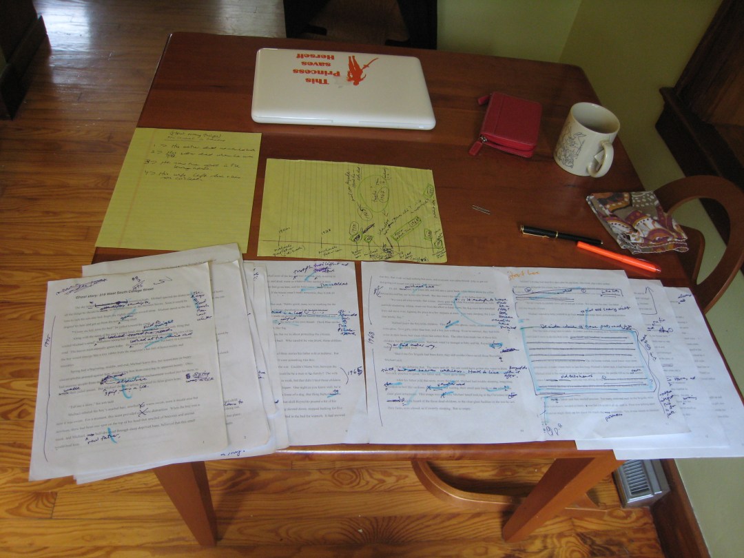 (I started this story from a very messy prompt/embryo I did last spring about taking stuff to the curb for junk day. We have this junk week thing in our town every year, where you can take just about anything to the curb and either another resident will harvest it or the trash collectors will take it. The essay was what I started with, literally writing the words I had typed up onto the paper, longhand, but veered from the essay totally so it ended up as fiction. Really, I’m dealing with some of my (internal) baggage in this essay-turned-story and so using this ‘junk’ was both cathartic and creative.)