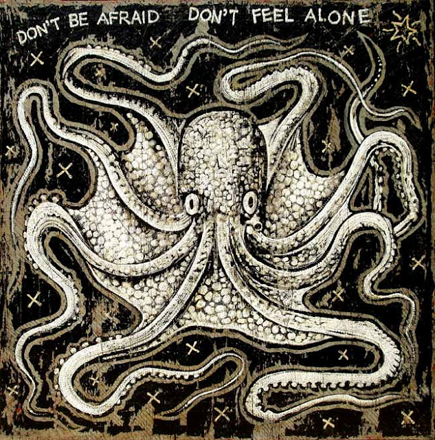 Jon Langford, “Don’t Be Afraid” mixed media painting