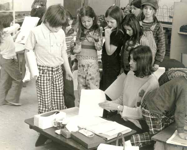 Teacher Bev Price and students (including me) at the Antioch School sometime in the 1970s